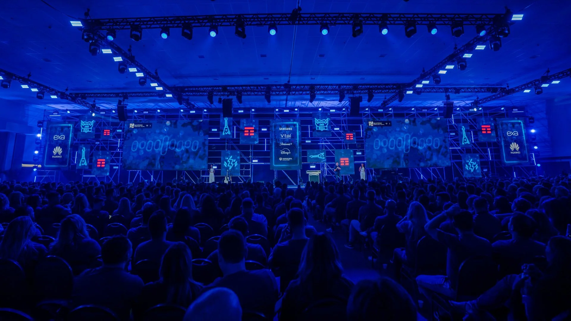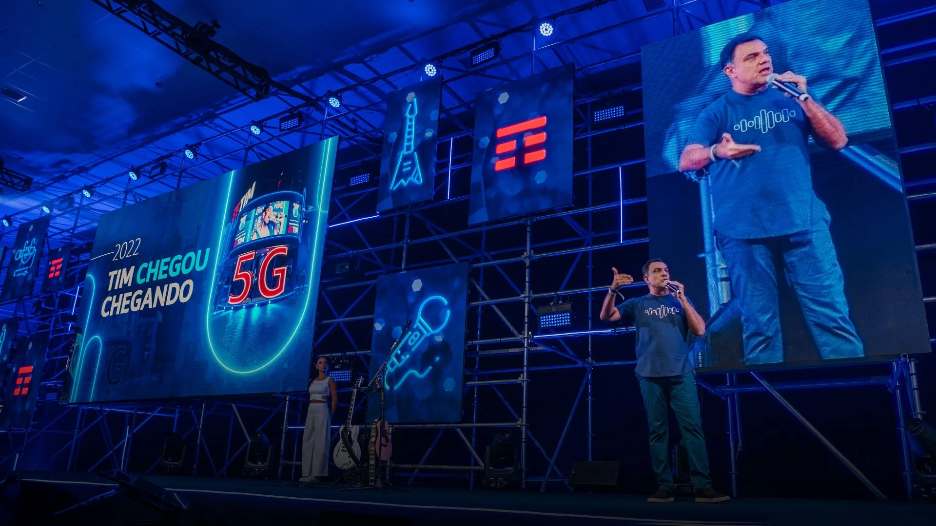 O desafio da convenção "Let's Rock TIM" era combinar a experiência de um festival de rock com o compromisso ESG da TIM, fugindo do óbvio em eventos corporativos. Para uma plateia de 1.300 participantes presenciais e 10.000 online, desenvolvemos um design de cenografia focado em garantir uma operação com lixo zero. A solução foi utilizar apenas elementos alugados e eco-friendly, como módulos tubulares, telas e luzes LED, construindo uma estrutura impactante, mas que não gerou resíduos.